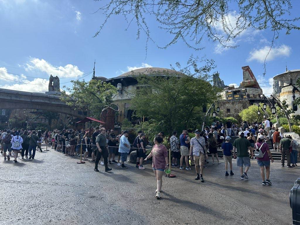 Fans lined up all throughout Star Wars: Galaxy’s Edge to pick up their own lightsaber from Dok-Ondar's Den of Antiquities.