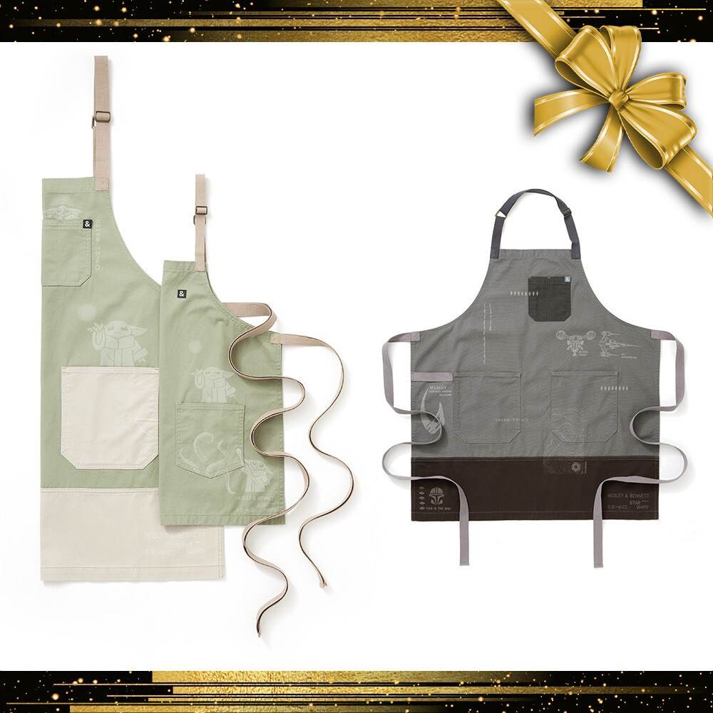 - Your clan of two will be ready for any culinary mission with these adorable aprons inspired by the Mandalorian and Grogu.