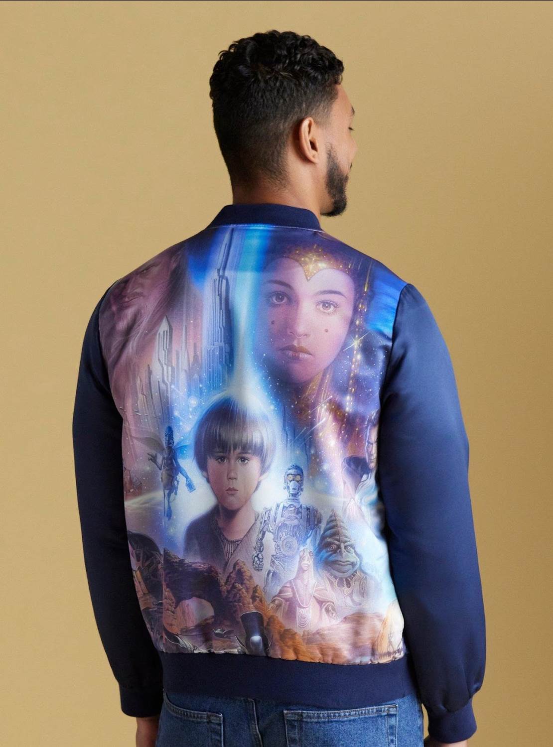 - Fans looking for something a little less character specific will appreciate the Our Universe label offering a cast satin bomber jacket, or the podracing woven button up.