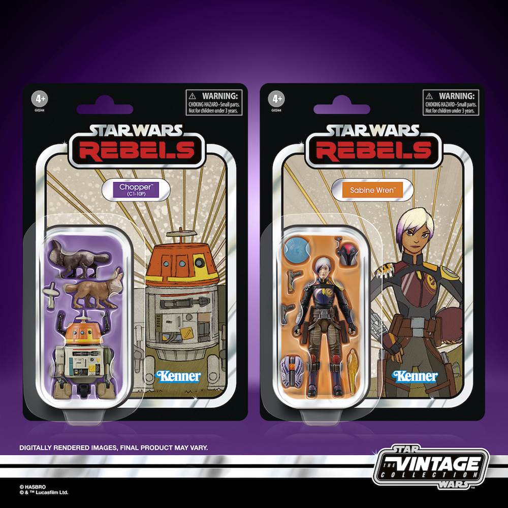 - These new reveals include the highly anticipated Star Wars: The Vintage Collection Sabine Wren & Chopper (C1-10P) 2-pack on Lothal Capital City mural cardback.