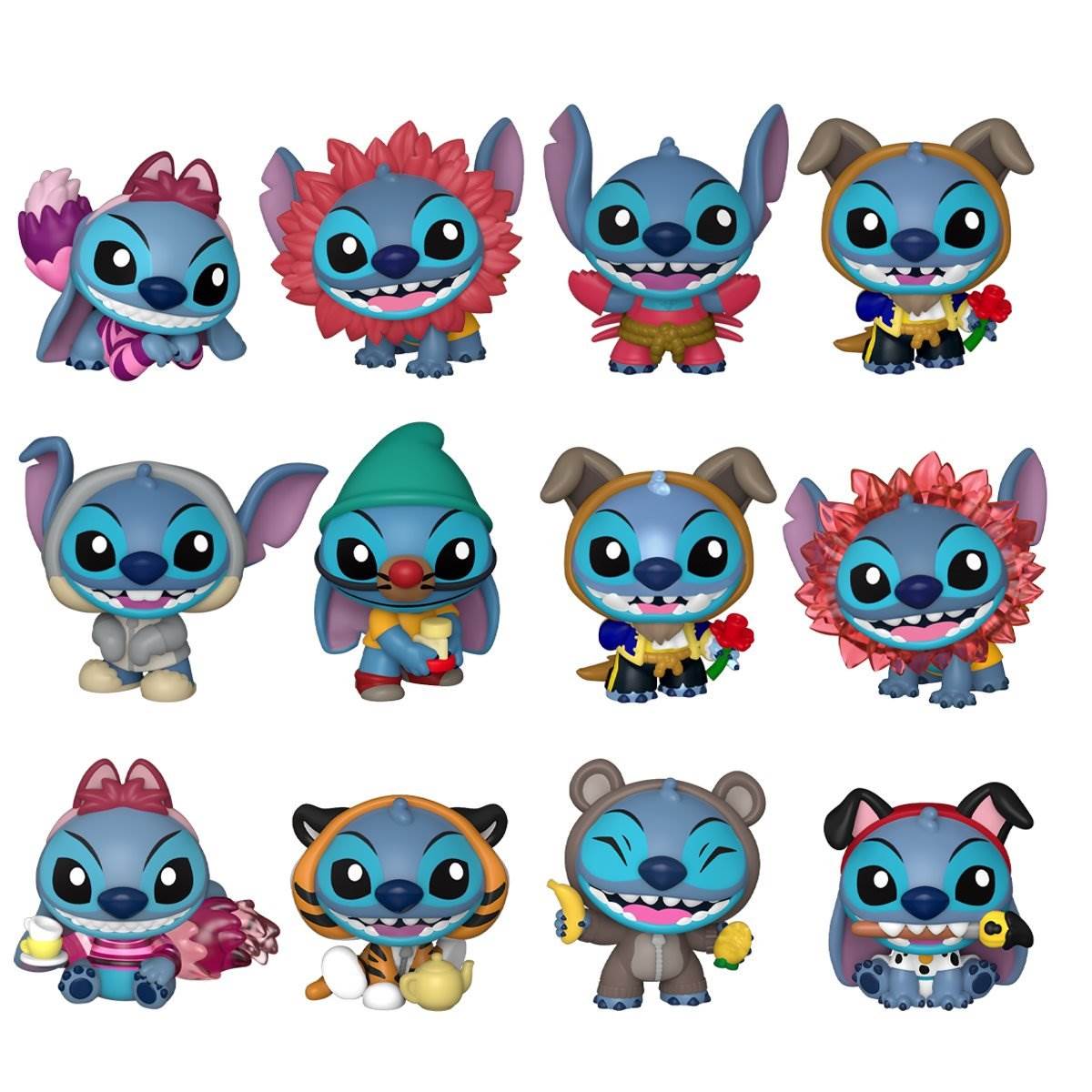 - For this wave, Stitch spends time as Simba, Beast, Cheshire Cat, Pongo (Pop!), and Sebastian (plush) plus a handful of other characters in the blind box mini figure assortment.