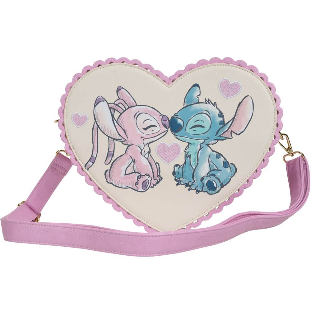 - This winter Disney fans can celebrate love and friendship with Stitch and his sweetheart Angel. The alien duo share a cute kiss on this heart-shaped crossbody bag designed for the holiday.