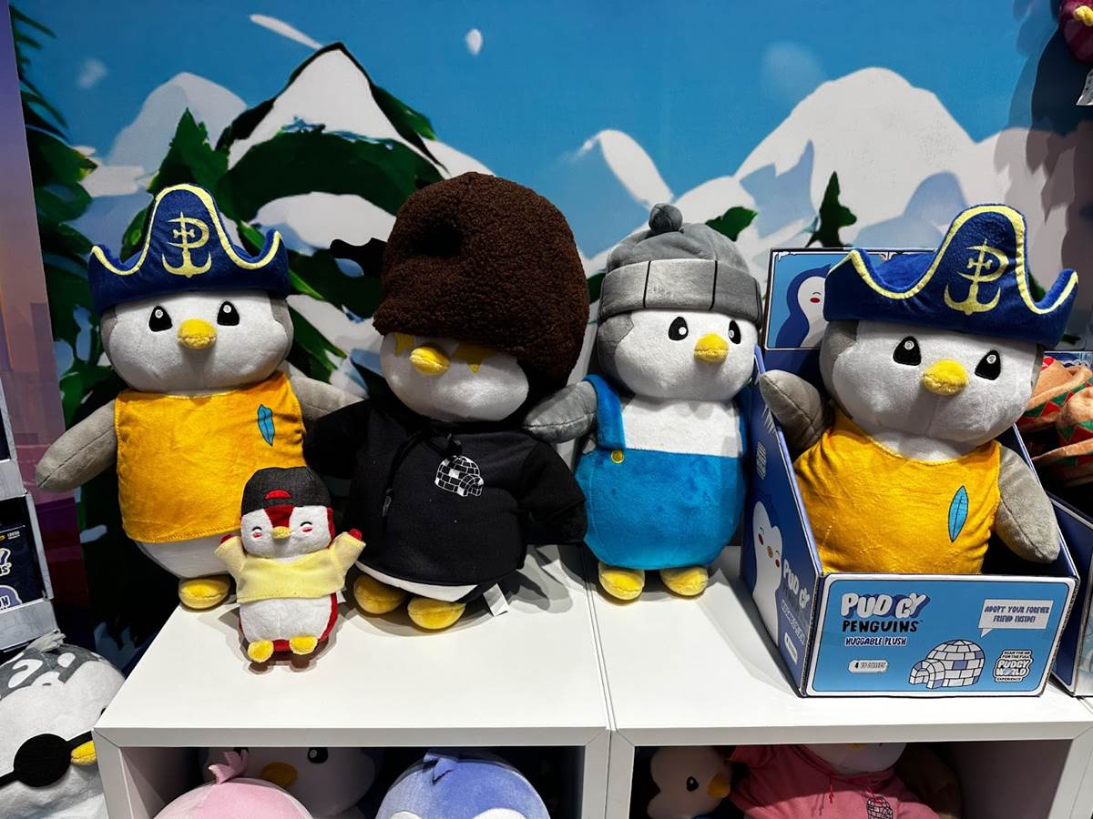 Large huggable plush, smaller plush buddies, clip-on plush, boxed figurines, and mystery figure igloos are the literal tip of the iceberg when it comes to Pudgy Penguins.