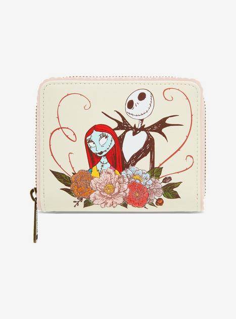 Minnie Mouse serves as the style inspo a heart covered red wallet that features her round ears and a big bow; while Jack and Sally (The Nightmare Before Christmas) pose on a floral wallet as they celebrate Valentine’s Day in their own way.