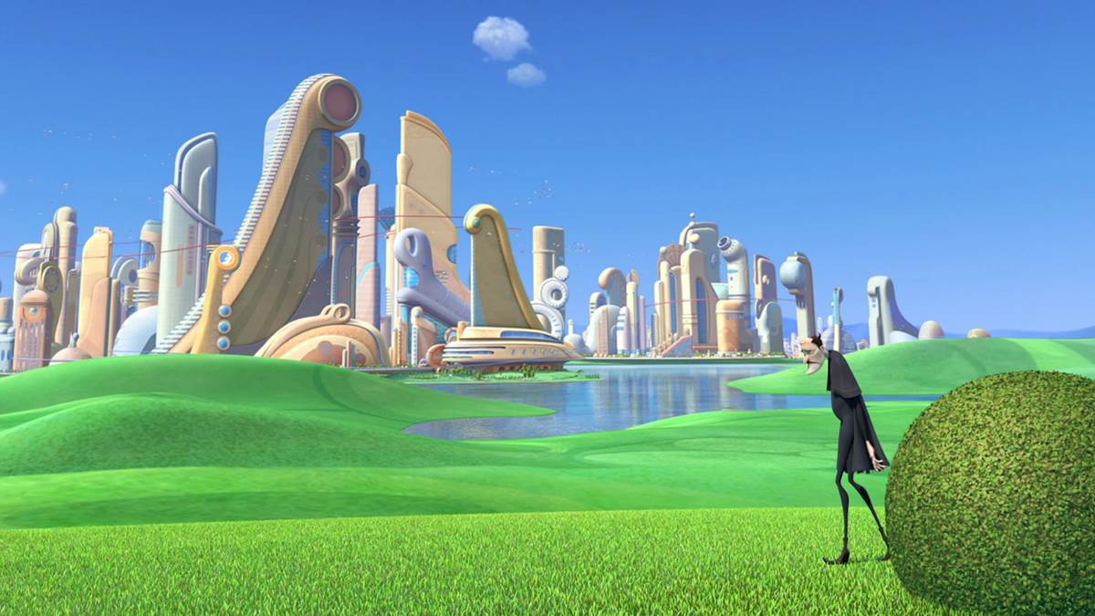 Our own Kyle Burbank suggested the idea of incorporating Meet The Robinsons into Tomorrowland at the parks. While he didn’t mention any single kind of experience, it seems that he liked the idea of just taking on the aesthetic of the future as seen in the film. A single scene that features Wilbur and Lewis flying through the future lends credit to the idea, as you even see peoplemover-esque vehicles moving throughout and a reference to the already existing Tomorrowlands in the parks (though a pre-mid-90s version), and a marquee that says “Todayland."