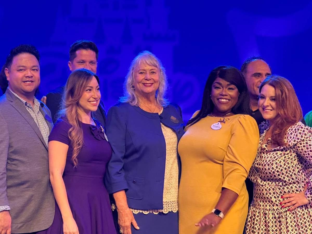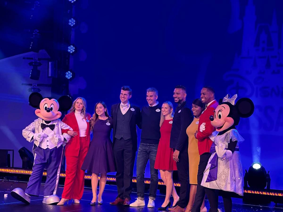 - At the end of the ceremony, a huge group of current and former Walt Disney World Ambassadors came together for a group photo on stage.
