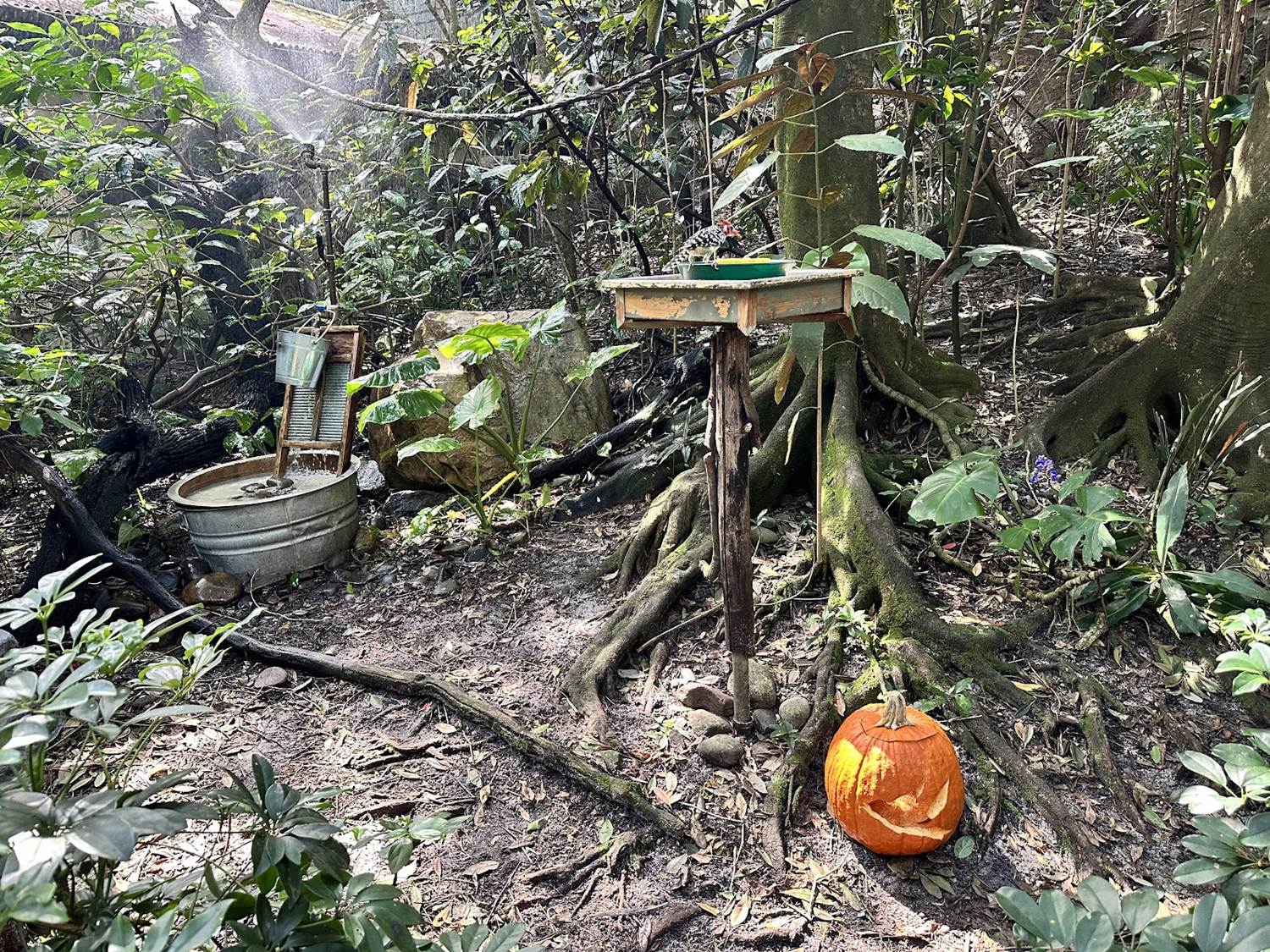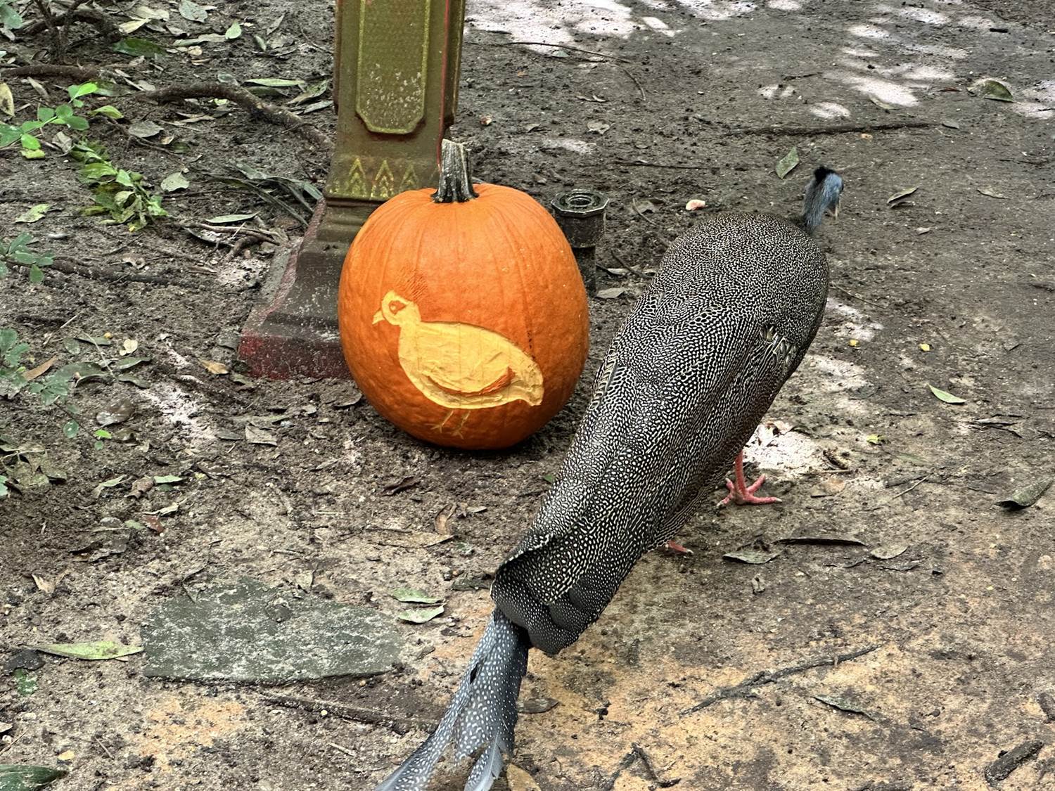 The enrichment items add a level of play and stimulation for the animals at the park, and a new seasonal item definitely will spark their interest and curiosity. Unless of course, it’s time for a nap in the shade. The Maharajah Jungle Trek also features a massive aviary that guests can walk through to see plenty of birds. Here, more pumpkins have been placed, including a pumpkin man, for the feathered friends to perch on.