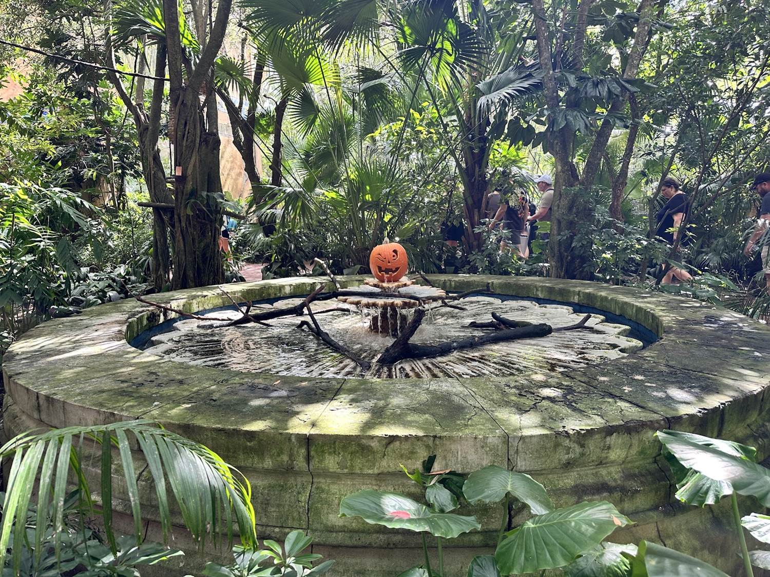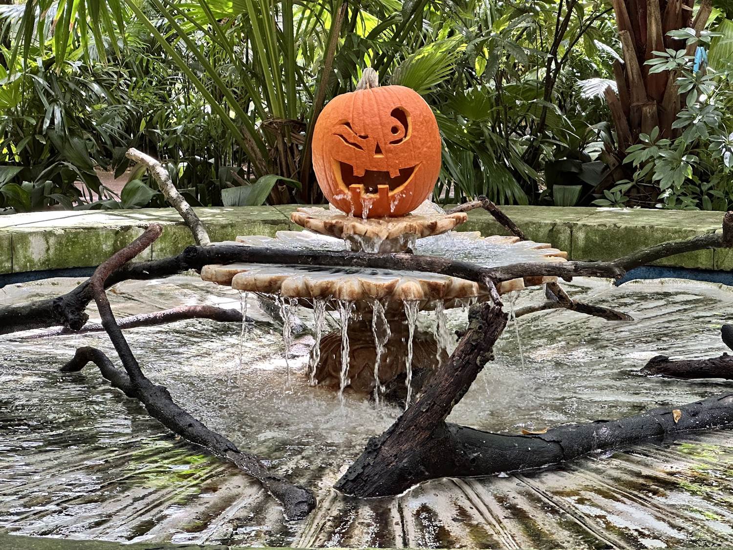 Spotted throughout the Maharajah Jungle Trek in the Asia section of the theme park, guests can meander through this walk-through trail and see animals including Tigers, Komodo Dragons, and Bats. Now, in those animal areas guests might find real and natural pumpkins throughout that have been carved to tie in with the animals and area.