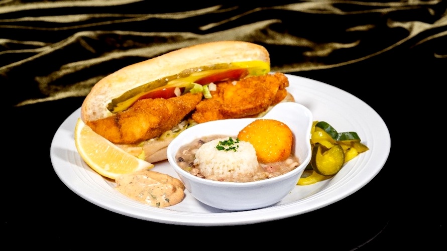 - Catfish Po’Boy: Southern-style dusted catfish filet with lettuce, tomatoes, and mayonnaise on toasted New Orleans French bread with remoulade sauce served with black-eyed pea stew, hot water cornbread, and house-made pickles.
