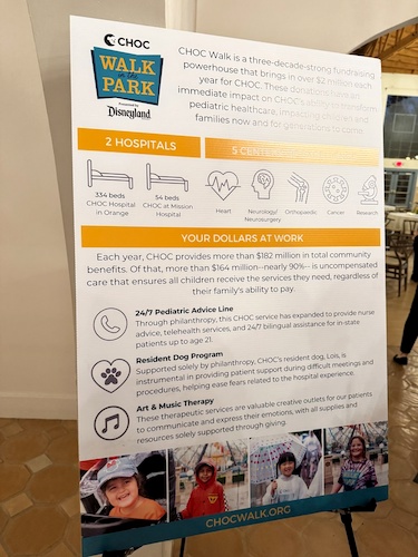 This week in Orange, California, the CHOC Foundation held its Awards Recognition Event recognizing those who contributed the most to the 2024 CHOC Walk in the Park fundraiser, and the date was announced for the 2025 CHOC Walk at Disneyland Resort this summer.