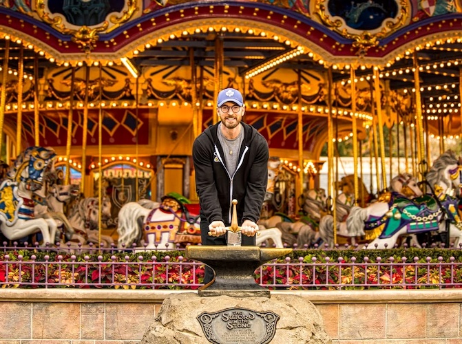 Actor Chris Evans is proving that he might be the strongest in the universe, after wielding his shield and Mjolnir, he’s now conquered the Sword in the Stone at the Magic Kingdom.