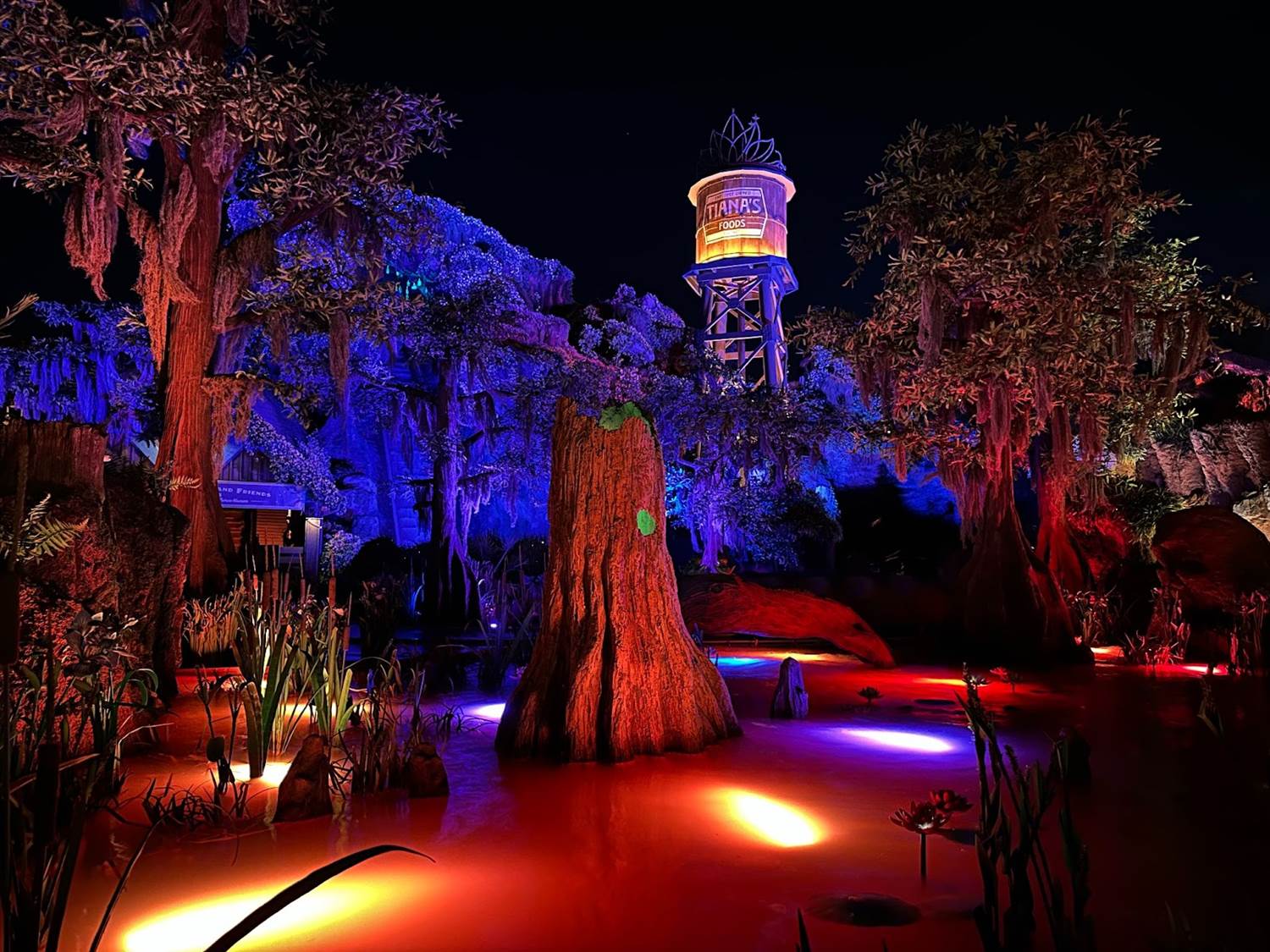 With construction walls coming down around the attraction, Tiana’s Bayou Adventure is almost there. With a clearer look at the bayou, let’s take a look at how the magic comes alive at night.