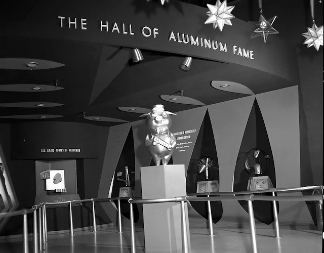 Main Street U.S.A. wasn’t the only location in which there was a sponsorship stipulation. There was one in Tomorrowland that was a bit more contractual in nature. Despite the last section talking about how fast the park was built - Tomorrowland was just under the wire, with our hosting duo pointing out that with everything else in the park, it was almost an afterthought. We did get a Tomorrowland at opening though, complete with attractions even though some were clearly meant to be temporary (20,000 Leagues Under the Sea sets) or very rushed. Among them was the Kaiser Aluminum Hall of Aluminum Fame - but as part of the sponsorship, it was deemed that Aluminum must be used in the construction of the land and used whenever possible.