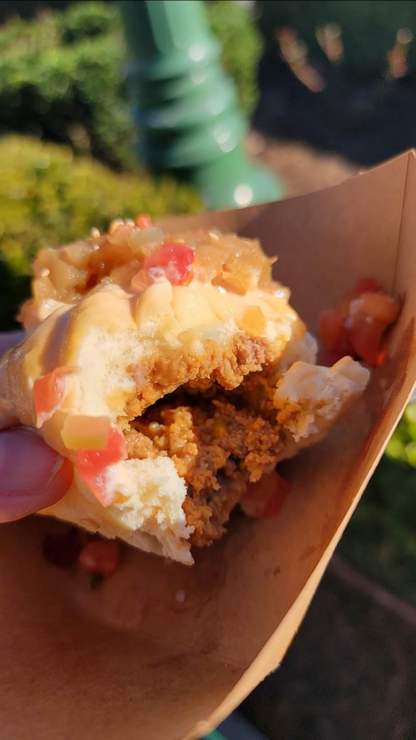 Among my 8 tasting choices, I was least looking forward to the Cheeseburger Bao (California Craft Brews) as I’ve not tried a bao I’ve liked. However, this proved to be a tasty dish of juicy ground beef with melted cheese with 1000 island dressing, grilled onions and slightly crunchy pickle relish. Knowing how many of my Walt Disney World friends enjoy the Cheeseburger Steamed Pods at Disney’s Animal Kingdom, I shouldn’t have been surprised and now will add it to my to-do list for a taste comparison. Judging from the various conversations I heard around me throughout the day this dish was quite popular.