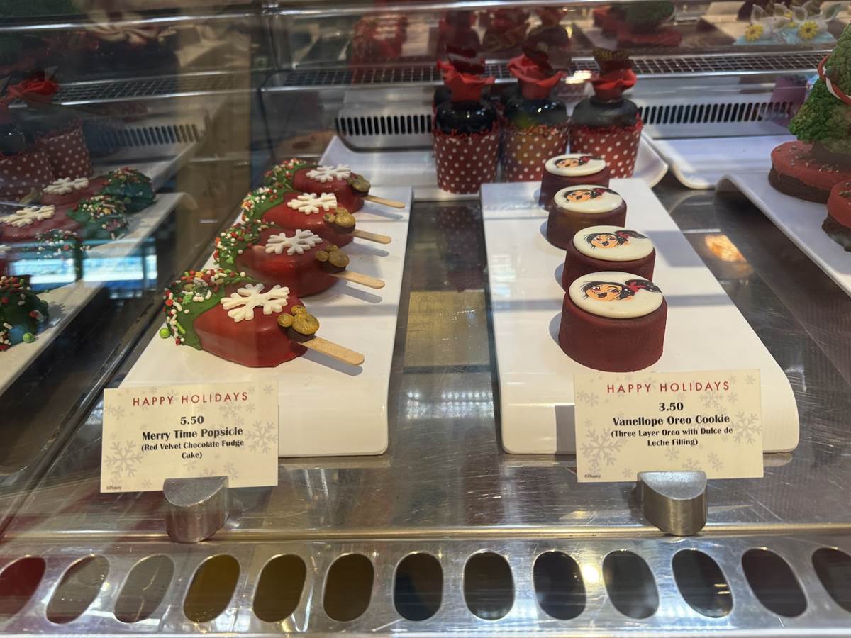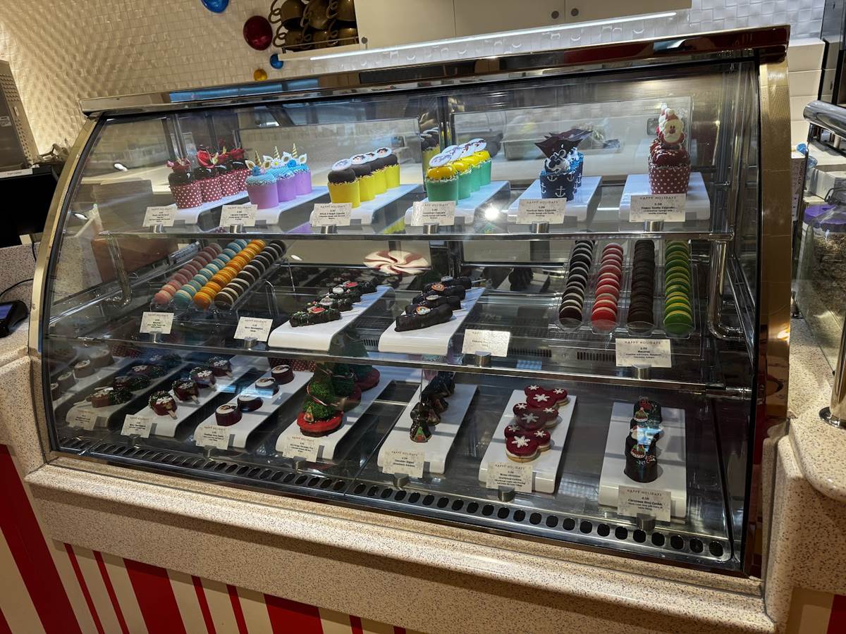 The most wonderful time of the year is even more joyful (and tasty) this holiday season as Disney Cruise Line unwraps new festivities for the whole family aboard Very Merrytime cruises, including a number of special treats available. We found a case full of them at Vanellope’s aboard the Disney Dream on our cruise, have a look!
