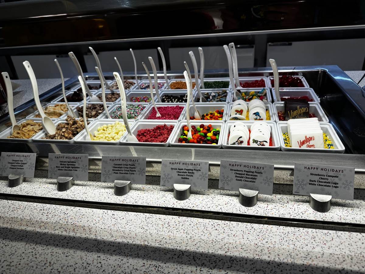The festive treats are one part of the fun of a Very Merrytime cruise aboard the Disney Cruise Line. These treats were found at Vanellope’s Sweets and Treats aboard the Disney Dream, but can be expected at equivalent locations, like Sweet on You aboard the Disney Fantasy and Inside Out: Joyful Sweets aboard the Disney Wish.