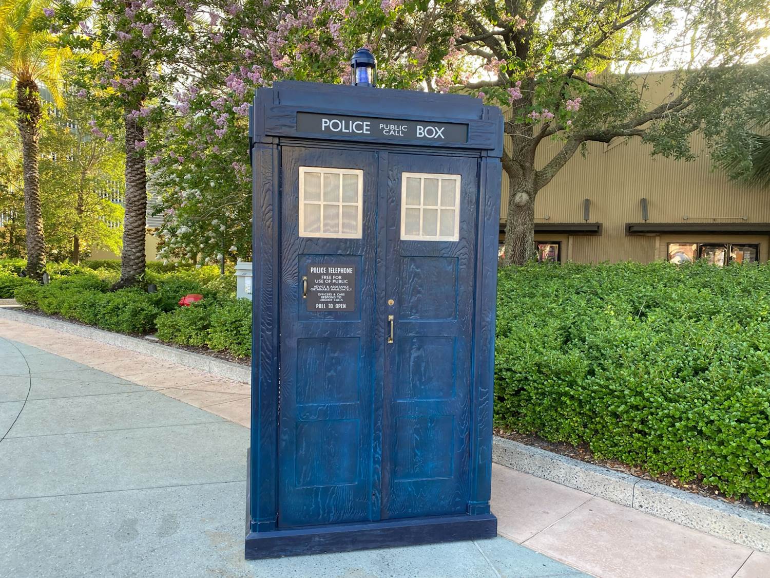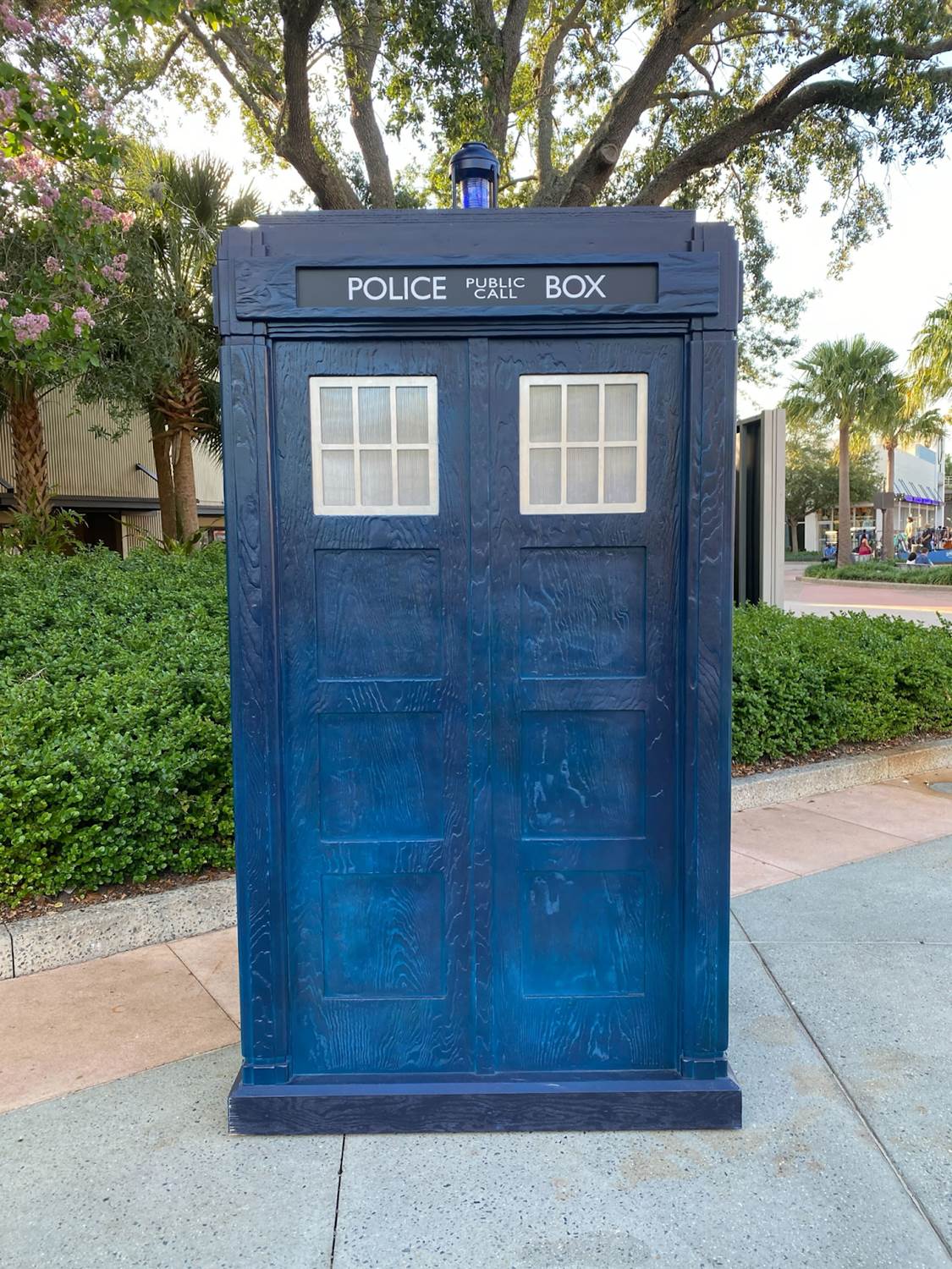 - The famed Police Box is currently located next to the Orange Garage and AMC Theatres entrances.