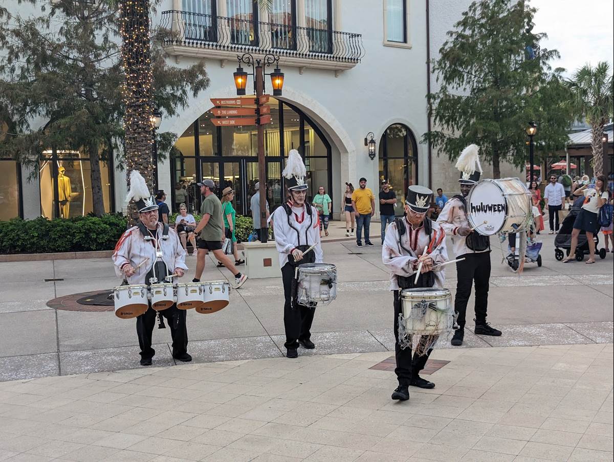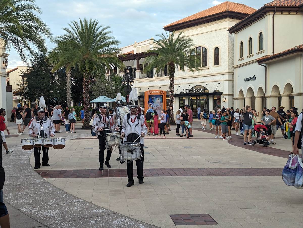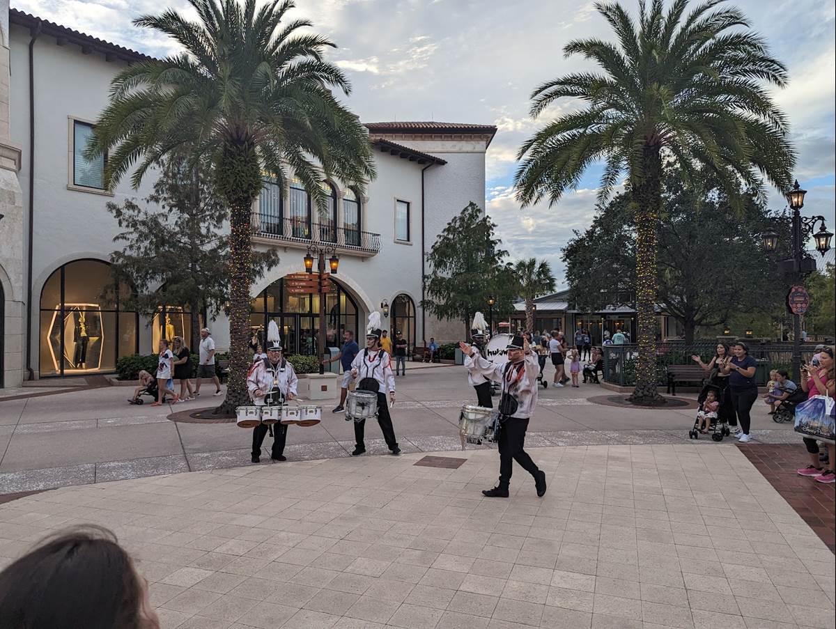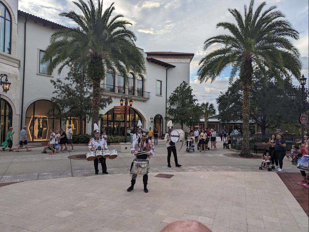 This new entertainment offering is a drum line with a similar vibe to the popular Jammitors at EPCOT entertaining the crowds throughout Disney Springs’ Town Center, between the Lime Garage and the Orange Garage. The official Disney Springs website does not list this special entertainment offering, likely keeping the showtimes a surprise for those who visit. If you head to Disney Springs and consider this performance a must see, be sure to check with Guest Relations in Town Center nearby.