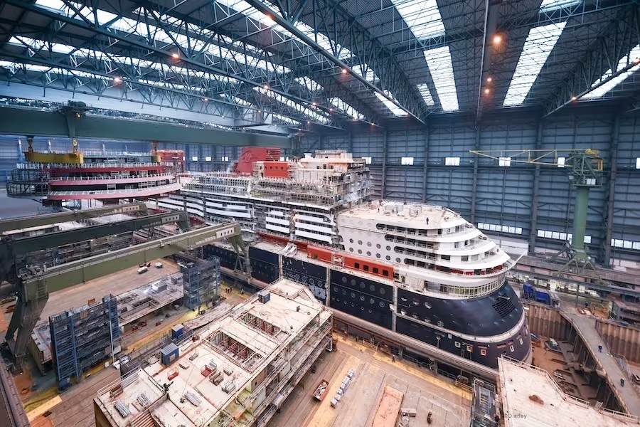 A major milestone in the construction of Disney Cruise Line’s latest ship, the Disney Treasure, has been reached with the completion and installation of the last block, meaning that the ship is now structurally complete.