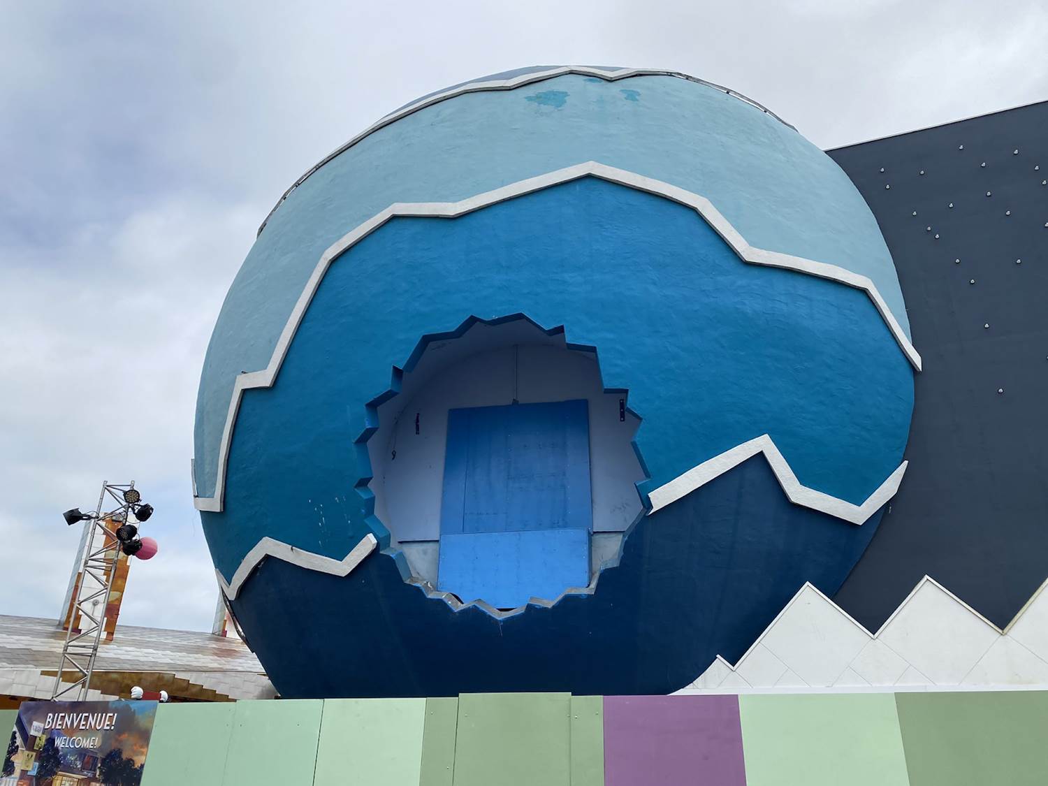 The stairway to the former Planet Hollywood, which closed at the beginning of 2023, has been removed with the entrance hole boarded up. No changes have been announced for this location just yet, but Imagineers did tease during a conference this week that more, as-of-yet-unannounced changes are coming.