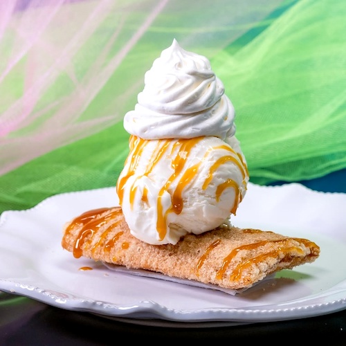 - Chicken and Funnel Cake at Stage Door Café: Funnel cake, chicken tenders, and whipped syrup with powdered sugar and whipped cream