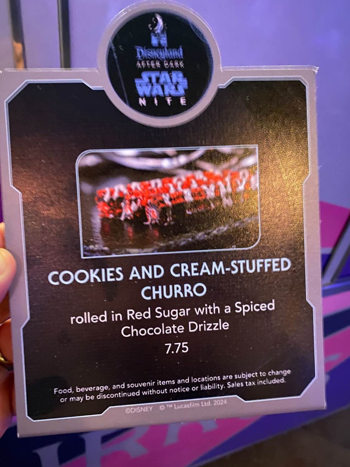 The food and beverage menu at Disneyland After Dark: Star Wars Nite this year is almost entirely new! There are just six items that are repeated from the 2023 event. And with a property like Star Wars, part of the fun of immersing yourself in this world is activating all of your senses. The full menu was revealed with tonight’s event guide, and we were able to capture a few additional images while trying to get as much done as possible during the four-hour event.