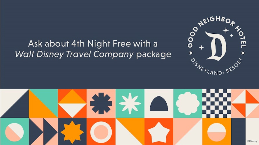 - For a limited time, guests can receive a fourth night free at a participating Good Neighbor Hotel when they book a Walt Disney Travel Company Package, while supplies last.