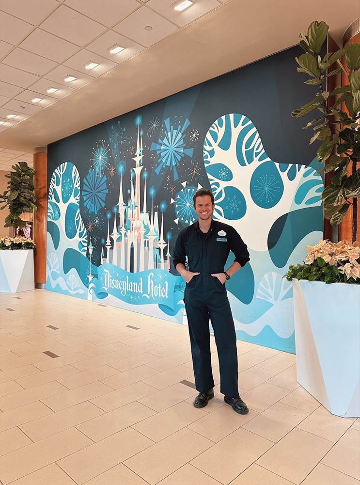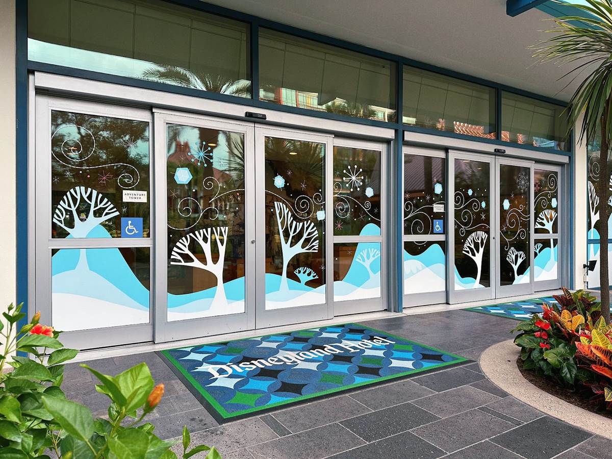 Artist Hayden Evans has brought a blizzard to the Disneyland Hotel with his new winter designs that now cover the hotel.