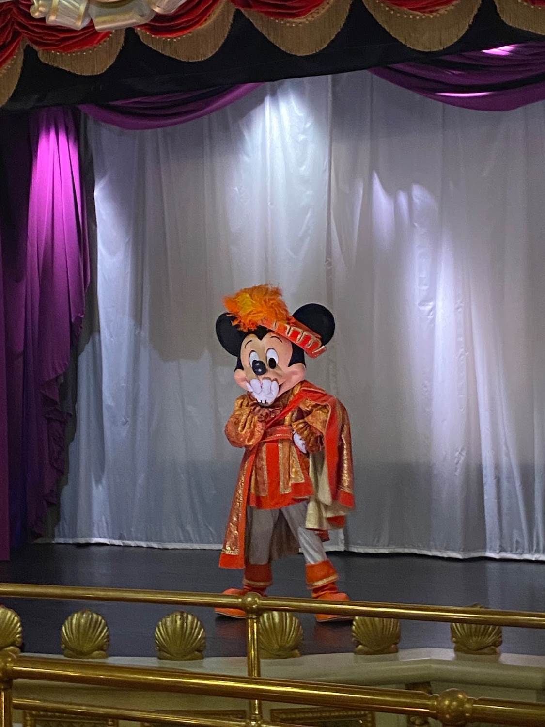 Fantasyland’s “Secret Area" was located towards the back of the land, near Alice’s Curious Labyrinth and Toad Hall. In this location, friends of Winnie the Pooh were present with the Cheshire Cat, Alice and the Mad Hatter. Over in “Meet Mickey Mouse" was a selfie spot with Royal Mickey, and various other characters roaming throughout the night (both Fantasyland residents and classic characters).