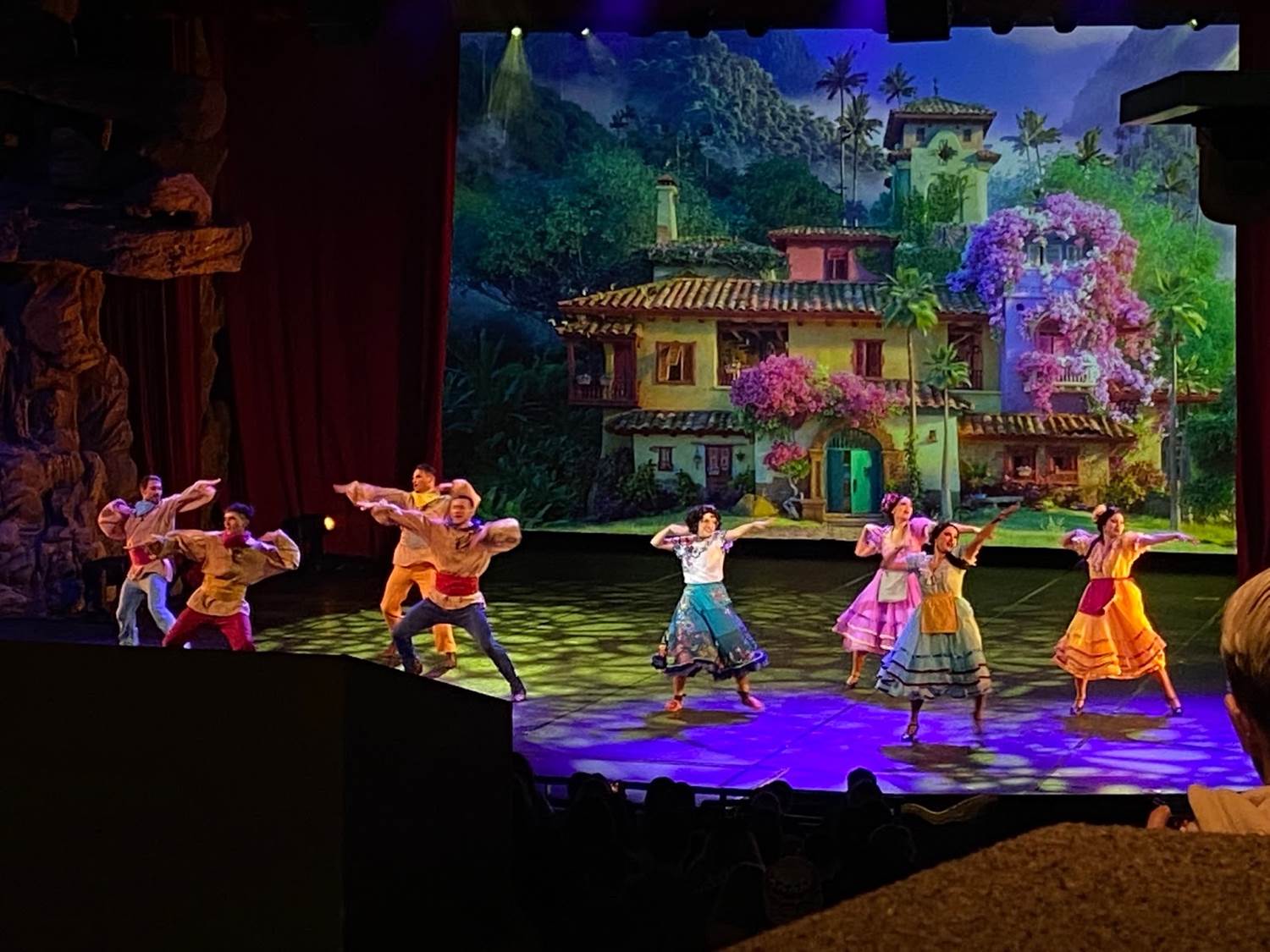 Videopolis Theatre hosted five performances of “Disney Classics Celebrations" throughout the night – a 25 minute long stage spectacular starring characters from various iconic Disney films. Segments and characters included: Aladdin, Jasmine, Jafar and Genie (Aladdin), Belle and the Beast (Beauty and the Beast), Mulan, Mushu and Li Shang (Mulan), Hyenas (The Lion King), Megara (Hercules), Mirabel (Encanto), and Asha (Wish) performing hits from their respective films.