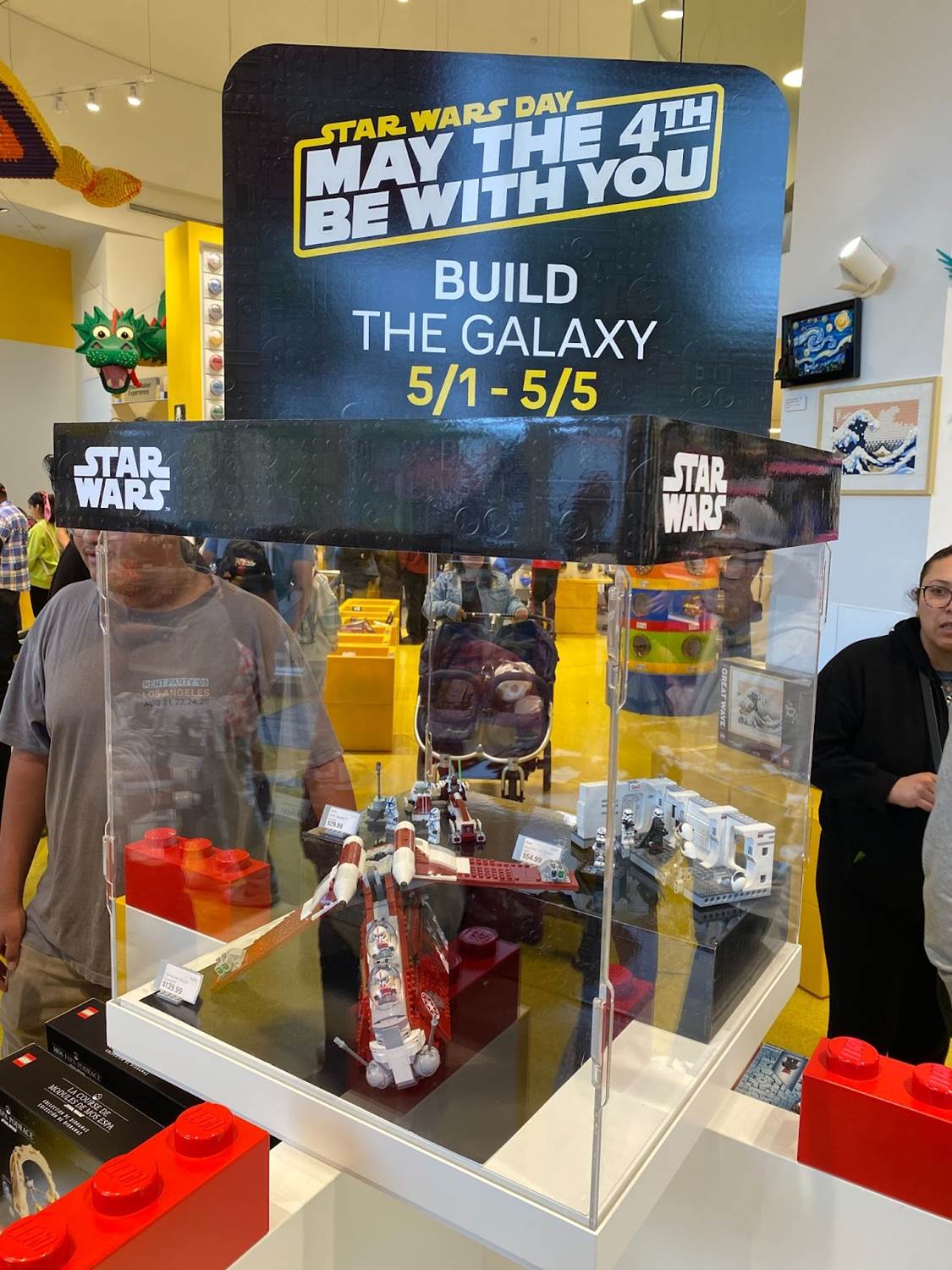Over at Downtown Disney’s LEGO Store, the popular toy outlet was celebrating May the 4th with exclusive deals and an outdoor kiosk displaying exciting new Star Wars LEGO sets.