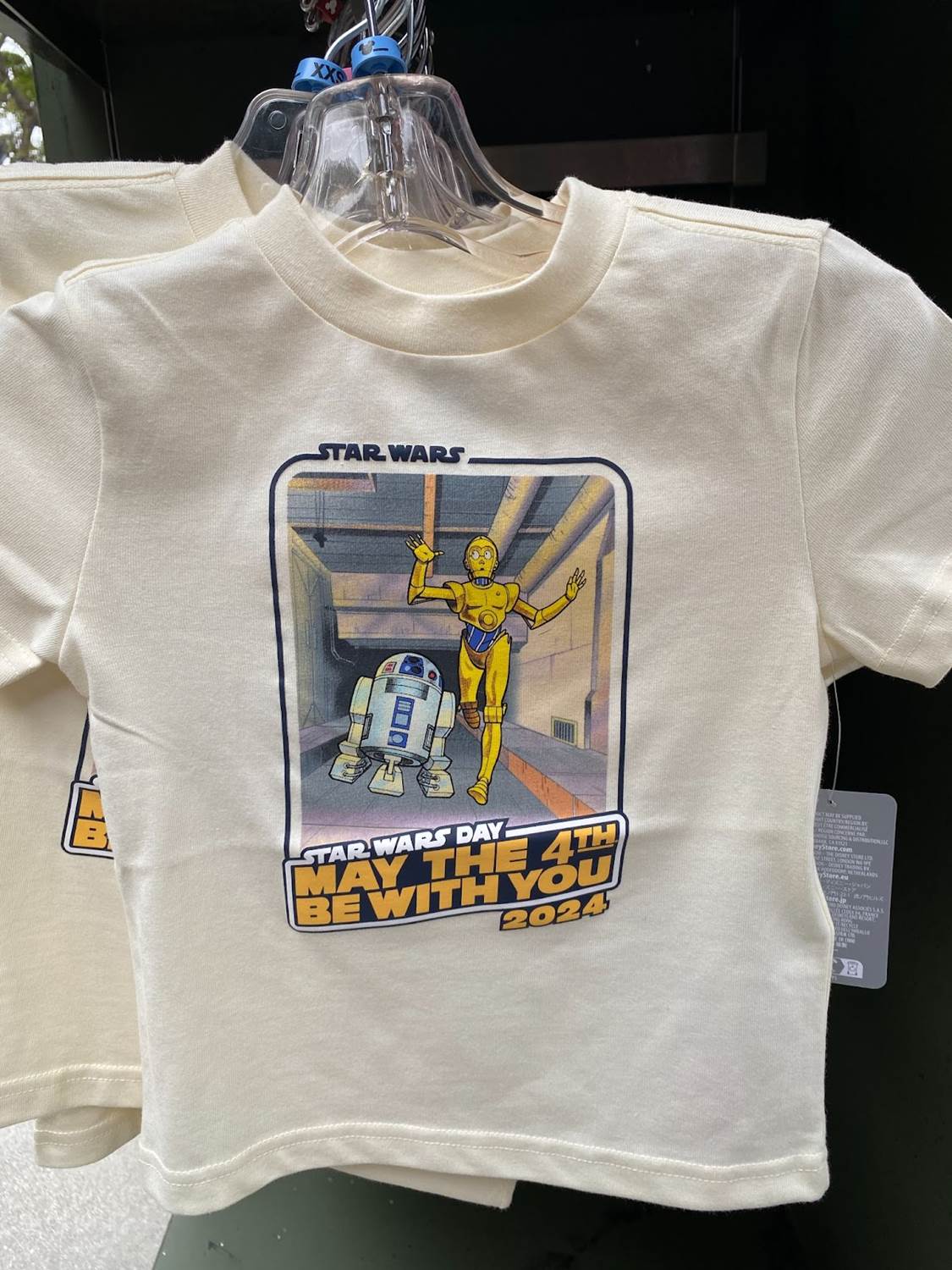 My first stop was the Star Wars Trading Post at Downtown Disney District, where I found a number of May the 4th Be With You-themed Star Wars Day merchandise items, including apparel and tumblers featuring designs inspired by the 1980s Star Wars Droids cartoon series.