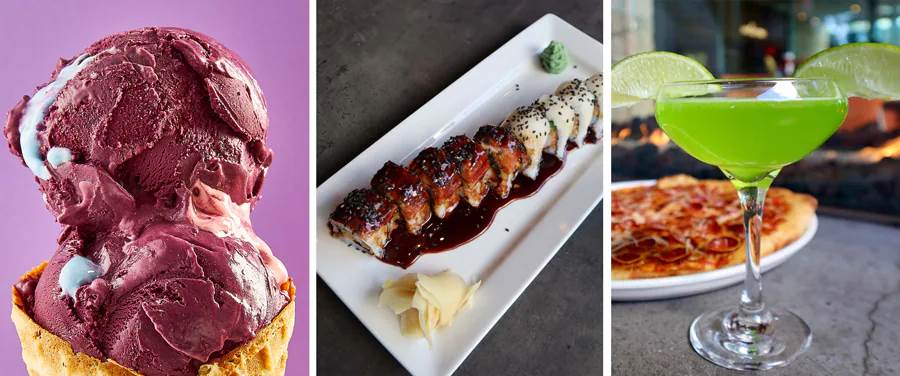 - Maraschino Cherry with Tie-Dye Marshmallow Fluff: Pink and blue marshmallow “milky way" fluff with purple, dark cherry ice cream