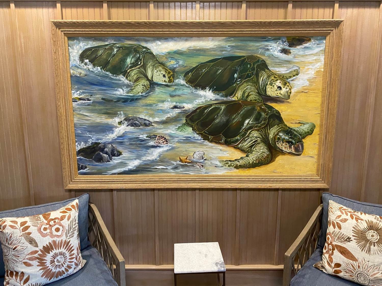 Driving up to the hotel, the quaint but striking architecture beckons you in and immediately gives you the feeling of a Disney hotel. Those vibes continue as you walk into the lobby, which has a beautiful scent and wonderful, wide-open feeling. There's a lot of decor tying into sea turtles, as Vero Beach is a popular sea turtle nesting spot. In fact, the resort even hosts an annual event called Tour de Turtles – a fun, educational event that follows the migration of sea turtles from their nesting beaches to their feeding grounds and, ultimately, provides scientific data on how best to protect their species.