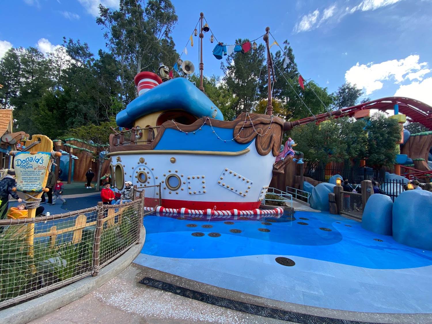 The official Disneyland website describes it as a place to “flap on over to a playful pond—the hospitable home of Donald Duck. Discover larger-than-life spinning water lilies, daring balance beams and rocking toys, perfect for keeping adventurous kids busy! For those who like a little splash in their step, a flood of fun awaits at Donald’s Boat. Peek through the portholes of this water-logged vessel to witness tons of tomfoolery—and spot some familiar ducklings, including Huey, Dewey, Louie and Webby. No matter what you choose to do, you’ll take to fun like a duck to water!