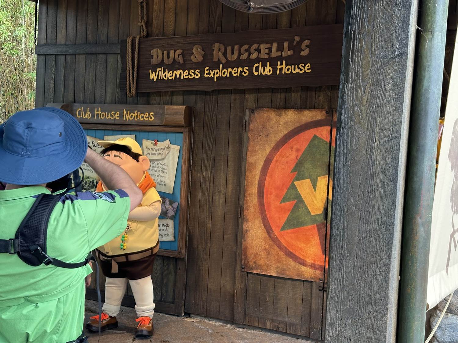 - Located near It’s Tough To Be A Bug and the Tree of Life at the Walt Disney World theme park, guests can once again find Russell and/or Dug from the film outside their Wilderness Explorers location.