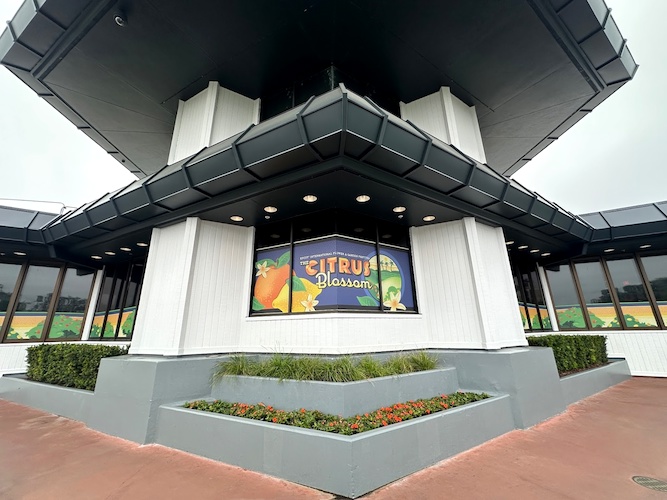 Artwork transforming the Odyssey pavilion into The Citrus Blossom has been installed while the building remains closed.