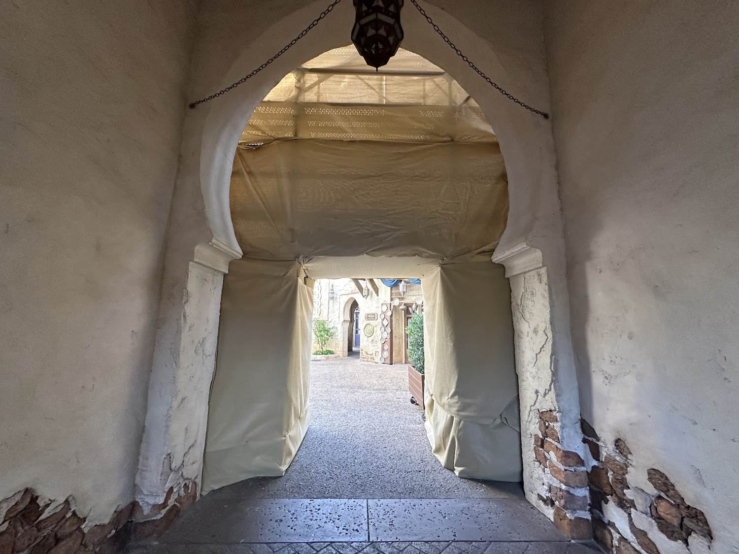 Portions of the pavilion are under tarps and scaffolding as work continues in the Morocco pavilion at EPCOT’s World Showcase.