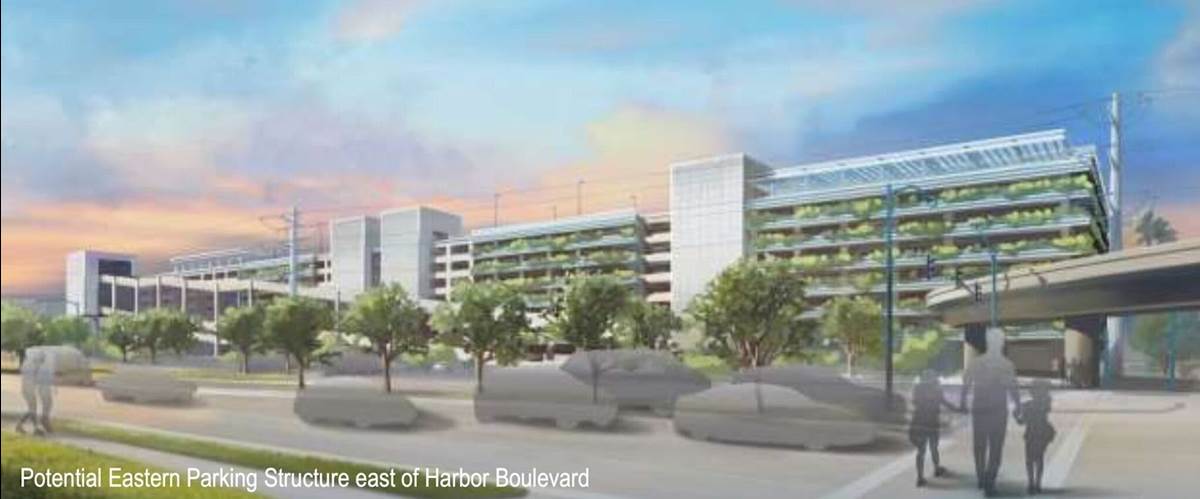 When I arrived at the DisneylandForward meeting, I was handed a printout of the Fact Sheet that is available for download in PDF form at the Anaheim city website. While there isn’t a tremendous amount of new information in this sheet, it does include some interesting charts and a new piece of concept art showcasing a potential new parking structure east of Harbor Boulevard. After an unrelated public hearing, the DisneylandForward workshop began with a presentation on the Environmental Impact Review. A background was given on the history of the Disneyland Resort and the Anaheim Resort area that surrounds it and the already-announced proposed plan for the future. In addition to the Disney-owned land that would be rezoned as theme-park space, Disney has proposed to make a number of other improvements to streets in the surrounding area, including new traffic lights, changes to lane configurations, and bike paths. Disney has also proposed closing off public automobile traffic to Magic Way, which runs from Walnut Street to Disneyland Drive south of the Mickey & Friends parking structure. The project would also add police and fire substations, while Disney would cost-share sewer improvements along Katella Avenue to the south of the resort. During construction, regional air quality and greenhouse gas emissions would be unavoidably affected, though mitigation methods have been identified.
