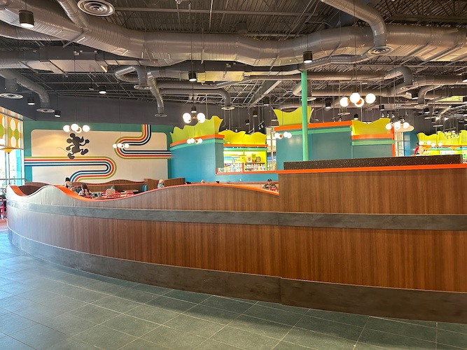The remodel of Pop Century’s shopping and dining area, Everything Pop, appears to be mostly complete – revealing an updated interior and experience for guests.