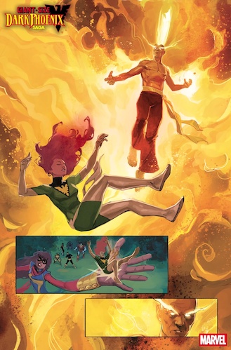 - After the events of the new Giant-Size X-Men #1, in which Kamala visits the rescue mission to Krakoa that caused the new X-Men to be formed in 1975’s original Giant-Size X-Men #1, Giant-Size Dark Phoenix Saga #1 finds Kamala witnessing the classic Dark Phoenix saga (originally written by Chris Claremont and drawn by John Bryne) play out, causing her to team up with Jean Grey in her darkest hour.