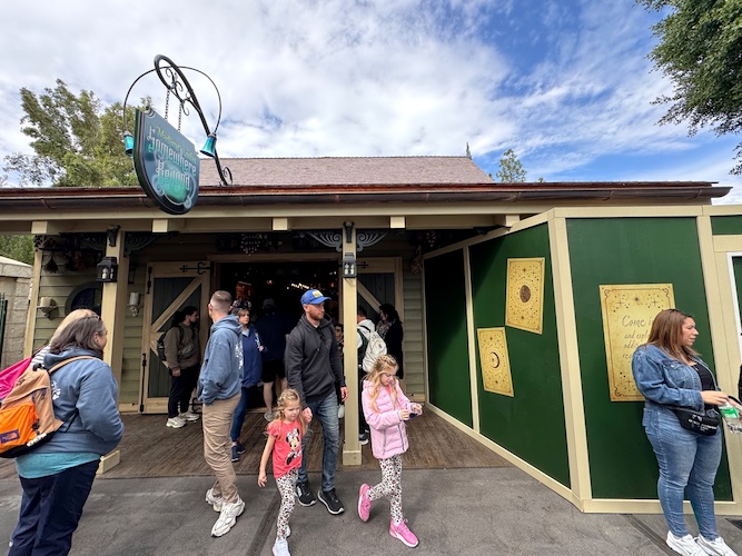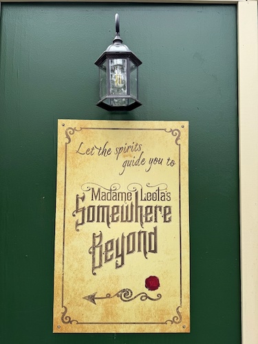 Madame Leota’s Somewhere Beyond is located between The Haunted Mansion and Tiana’s Bayou Adventure. The store is themed around a carriage house that was once the home of the Mansion’s caretaker, with Madame Leota taking up residence within at some point later.