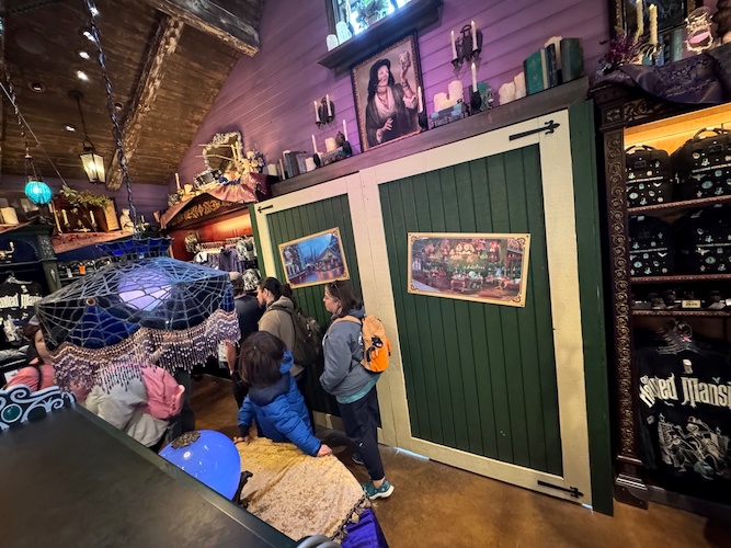Even though Madame Leota’s Somewhere Beyond gift shop only opened on Christmas Day at Disneyland, the new Haunted Mansion exit gift shop is already undergoing some new construction.