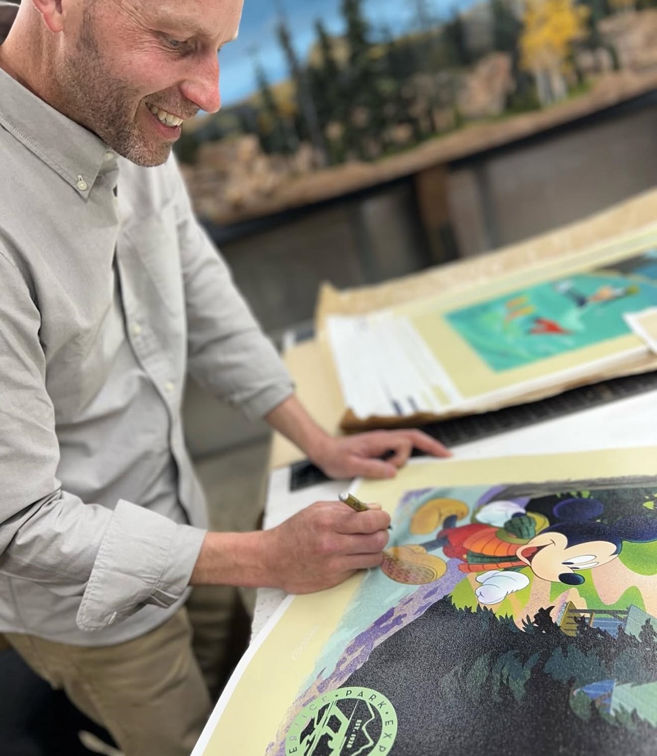 - He will showcase three new pieces inspired by his children’s book, Camp Mickey & Minnie - One Wild Summer, which was released last year and written by the talented Ryan March. Beautiful giclée canvas prints of Swept Up in the Magic! are also available, featuring Mickey's official portrait for his 95th anniversary.