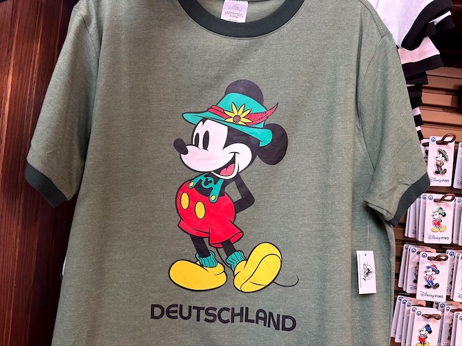 - The new line features T-Shirts, pins and a spirit jersey that feature the Disney icon in traditional clothing from Mexico, Norway, China, Germany, Italy, the U.S., Japan, Morocco, France, The UK, and Canada.