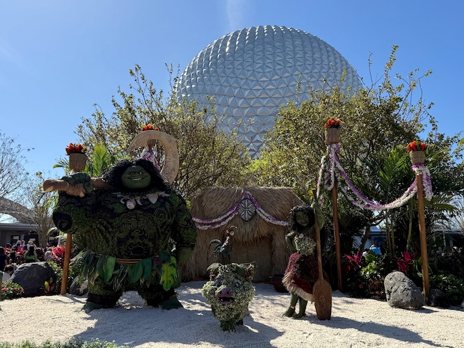 In just two days, the 30th year of the EPCOT International Flower & Garden Festival kicks off. Ahead of the start of the festival, one of the final remaining topiary displays has been installed – the main centerpiece featuring Moana.