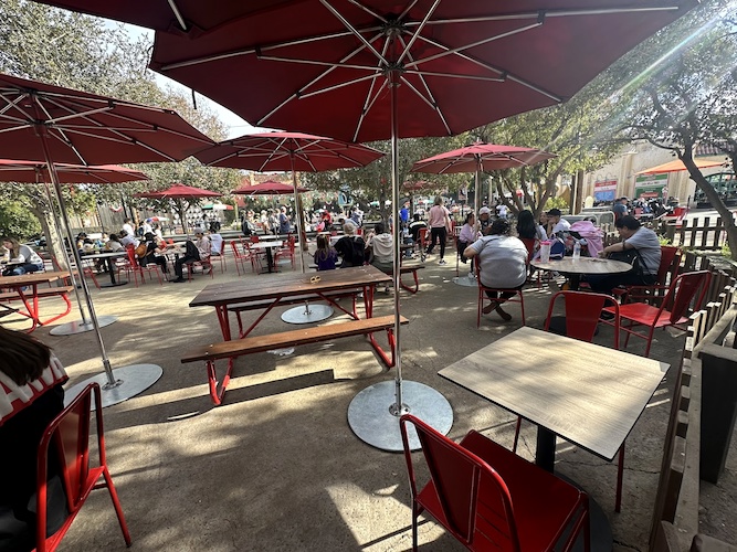 - A new seating area has just opened up Disney California Adventure’s Cars Land.