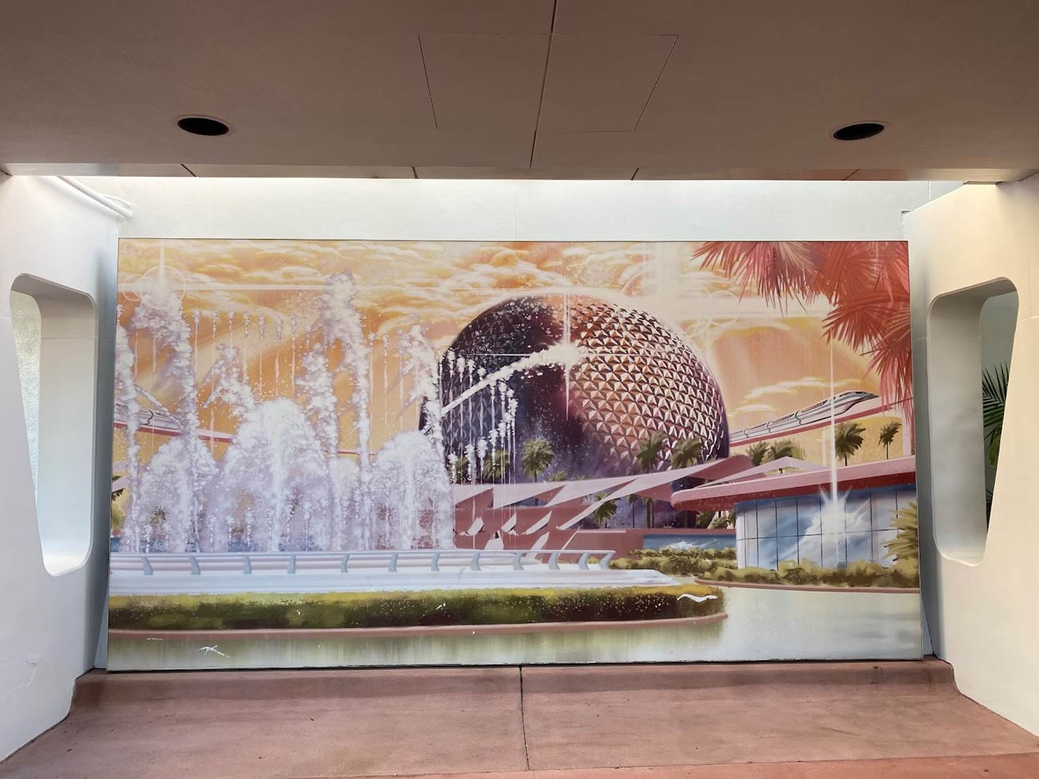 - It replaces a similar mural that featured Spaceship Earth and the Monorail alongside the now extinct Fountain of Nations.
