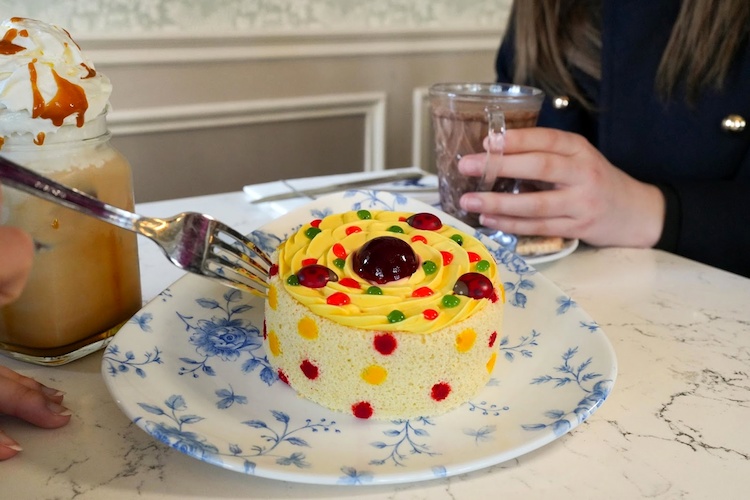 - The newest pastry is made for sharing, showcasing a rolled biscuit base layered with lemon cream, vanilla cream, and a confit of red berries decorated with colorful dots.