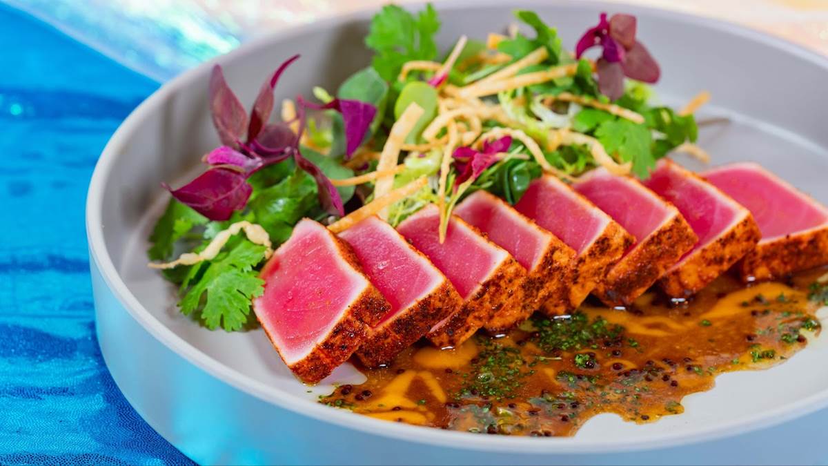 - Ahi tuna tataki with Aji Amarillo ponzu, persillade, and crispy wonton